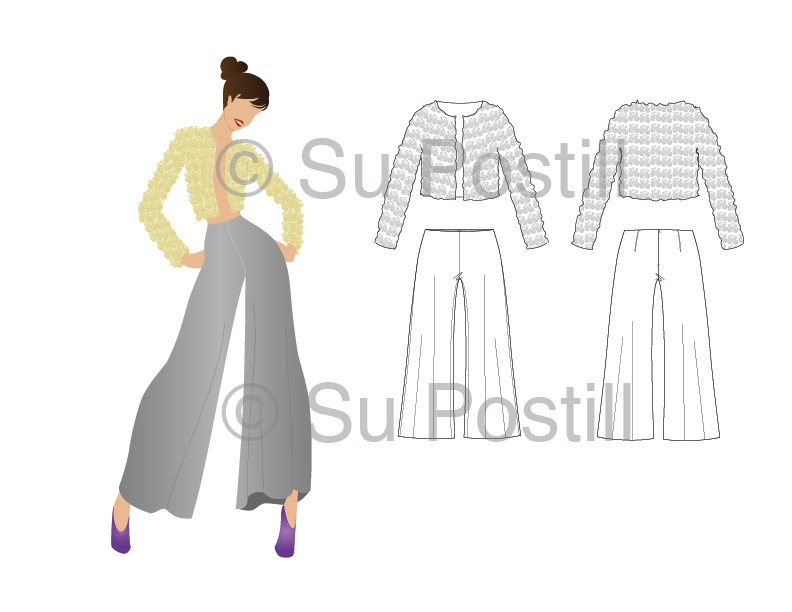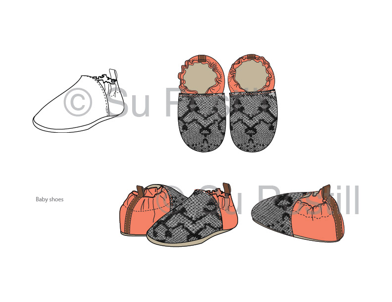 Technical Flats - Womenswear, accessories, baby shoes, croquis mockups, digital fabric print/pattern rendering, fabric texture, color matching Created digitally with Adobe Illustrator & Photoshop